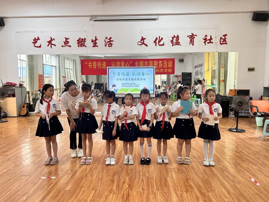 为贯彻落实党的二十大精神,深入开展学习贯彻习近平新时代中国特色社会主义思想主题教育,6月11日,我院学生第六党支部联合玉林市南江街道江滨社区开展“书香传递,沁润童心”志愿服务活动。