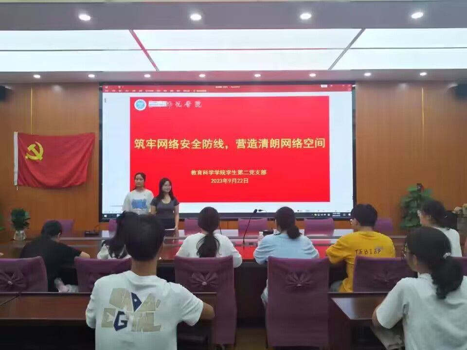 会议开始,刘春燕、梁冬秀同志向全体党员宣传网络安全理念、普及网络安全知识、推广网络安全技能,进一步增强其网络安全意识。随后,两位学生党员分享自身感悟,认为党员应切实增强网络安全防范意识,提高自我保护能力,争做维护网络安全的“守卫者”,自觉遵守国家法律法规和互联网行业各项规章制度。最后,李泽荣同志带领全体党员深入开展学习贯彻习近平总书记关于网络强国的重要思想,他希望全体党员能深入贯彻党中央关于网络强国的重要思想,提高警惕与增强辨析能力的同时,树立正确网络安全观。