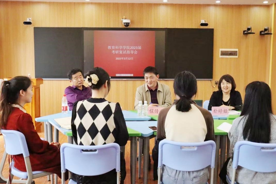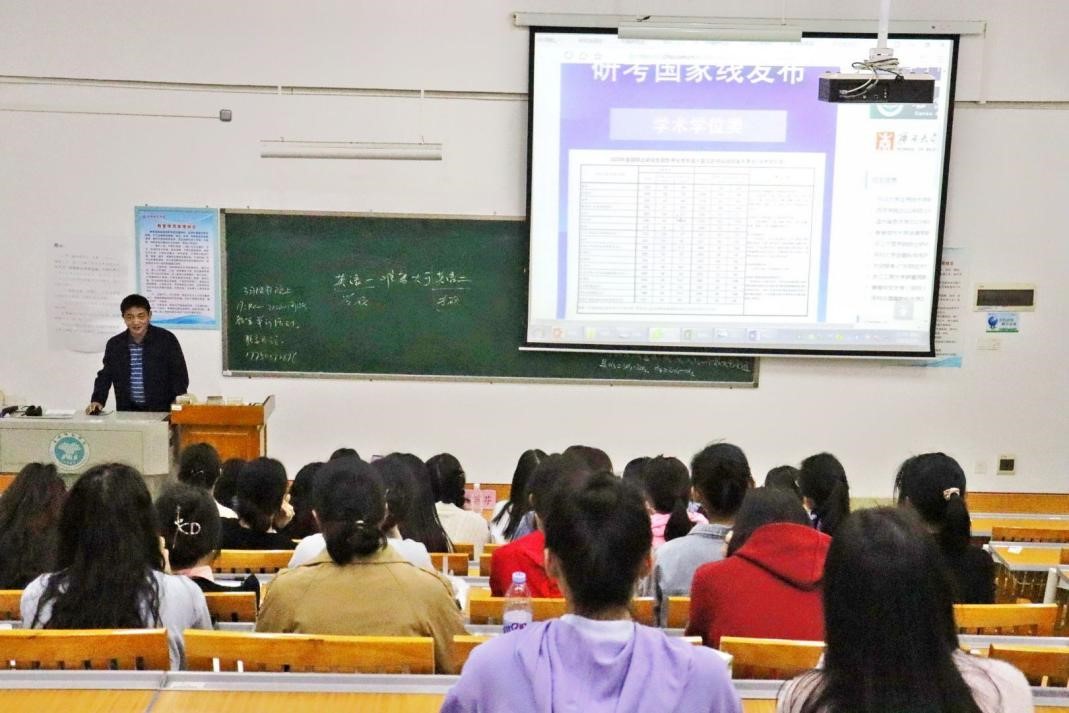 会上,程传利首先介绍了2023年学院考研情况并结合2023年考研形势和考研学生的初试成绩,根据往年经验,对复试准备、调剂政策等问题进行详细说明。他指出,学生应充分了解复试内容,巩固相关专业知识,提高自身英语口语水平,为复试做充足准备。并强调,学生应关注时势热点,认清自身未来研究方向,仔细解读调剂政策,筛选调剂院校。随后,他结合当前考研形势与政策,就考研的重要性及考研的方向、内容等方面进行分析,向学生说明考研对未来就业、扩展视野、能力提高的益处,指出学生选择考研院校和专业应从自身实力出发,仔细解读意向院校招生简章,全面了解目标院校招生情况,理性选择报考院校。最后,吕秀一、朴婷姬教师结合自身经历,与学生分享复试经验,并提醒学生及时准备个人简历,注重面试着装、仪态等细节。潘丽芬教师指出,学院可为学生提供资源及帮助学生协调实习,保证学生具有充裕时间复习。