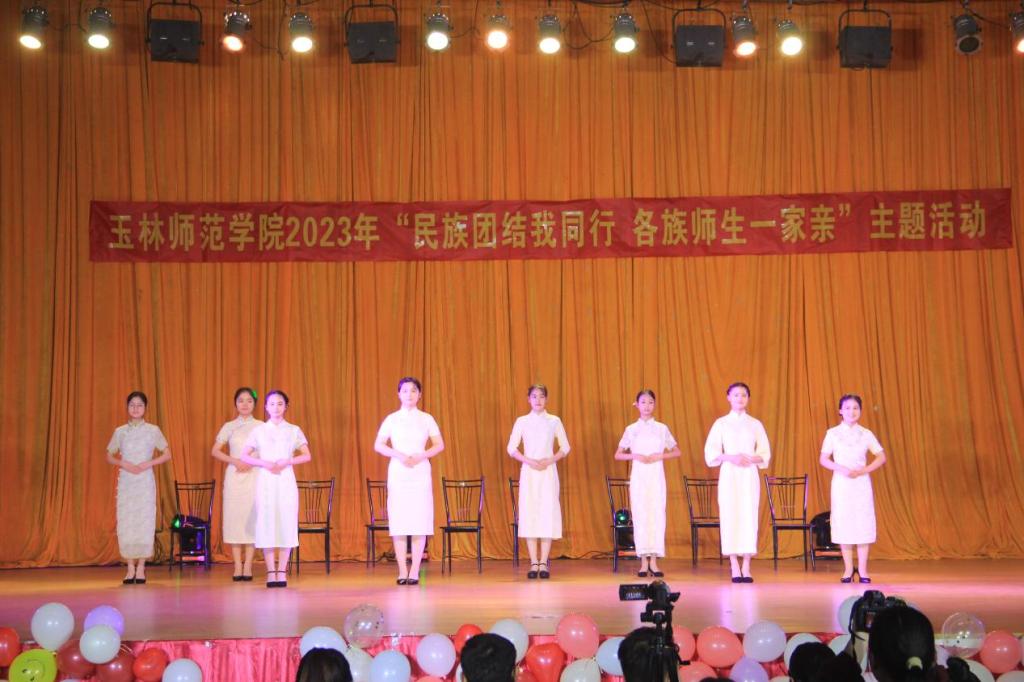 开场的民族服装走秀将一片喜庆融洽的气氛带入了现场,同学们在欣赏到种类多样的民族服饰的同时,也被各民族精美的服饰惊艳到;汉服展示将中国国风传统的精髓展现得淋漓尽致;一场美轮美奂的唐装展示带领同学们穿越千年时光,回到那个中华文明的巅峰时期;身着旗袍,聘聘婷婷,袅袅走来的小姐姐排着整齐的队伍,迈着统一的步伐缓缓走到舞台中央,展现了东方女性婉约之美,惊艳了满座观众;还有诸多节目也受到了同学们的好评。最后,同学们身着各民族的服装上台合唱《歌唱祖国》将本次活动推向了高潮,他们用真诚的表演和热情的歌唱为祖国民族团结喝彩,掌声和欢呼声此起彼伏,台上台下成了一片激情四溢的海洋。