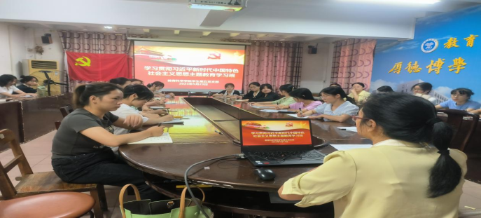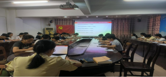 会上,支部书记农小献首先向大家介绍了深入开展学习贯彻习近平新时代中国特色社会主义思想主题教育的意义,向同志们提出了学习要求,随后,她带领党员们学习了习近平同志在全国教育大会上的讲话。习近平总书记重要讲话指出,培养什么人,是教育的首要问题。我国是中国共产党领导的社会主义国家,这就决定了我们的教育必须把培养社会主义建设者和接班人作为根本任务,培养一代又一代拥护中国共产党领导和我国社会主义制度、立志为中国特色社会主义奋斗终身的有用人才。农小献表示:习近平总书记在全国教育大会上作出的一系列重要论述,为做好新时代教育工作提供了根本遵循。我们要深入学习领会、全面准确把握党中央、国务院关于教育投入的一系列政策,为振兴乡村教育改革发展提供坚实保障。