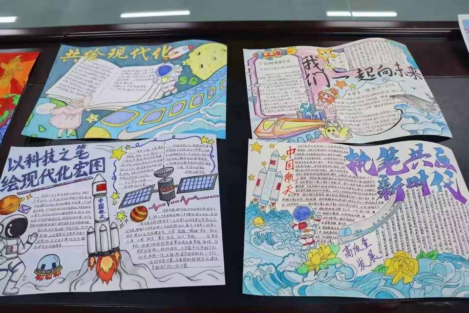 参赛学生结合中国式现代化的特征,绘制主题鲜明、突出,内容丰富,设计新颖,思想性、艺术性、知识性有机统一的手抄报作品,其中参赛学生作品精彩纷呈,手抄报主题鲜明、版面色彩鲜艳、形式多样、图文并茂,绘画内容广泛,涵盖经济,教育,科技,文化等方面内容,全面阐释中国式现代化的特征,同时结合自身日常学习生活体验,在画作中展现新时代青年学生立志成才的精神风貌,表达当代青年奋发图强,昂扬向上,为实现中国式现代化勤奋学习、争做新时代青年学生的心声。最后,评委根据绘画内容是否积极健康和富有创造力、主题是否鲜明突出、画面布局是否合理等进行评比打分,最终评出一等奖4名,二等奖8名,三等奖12名。