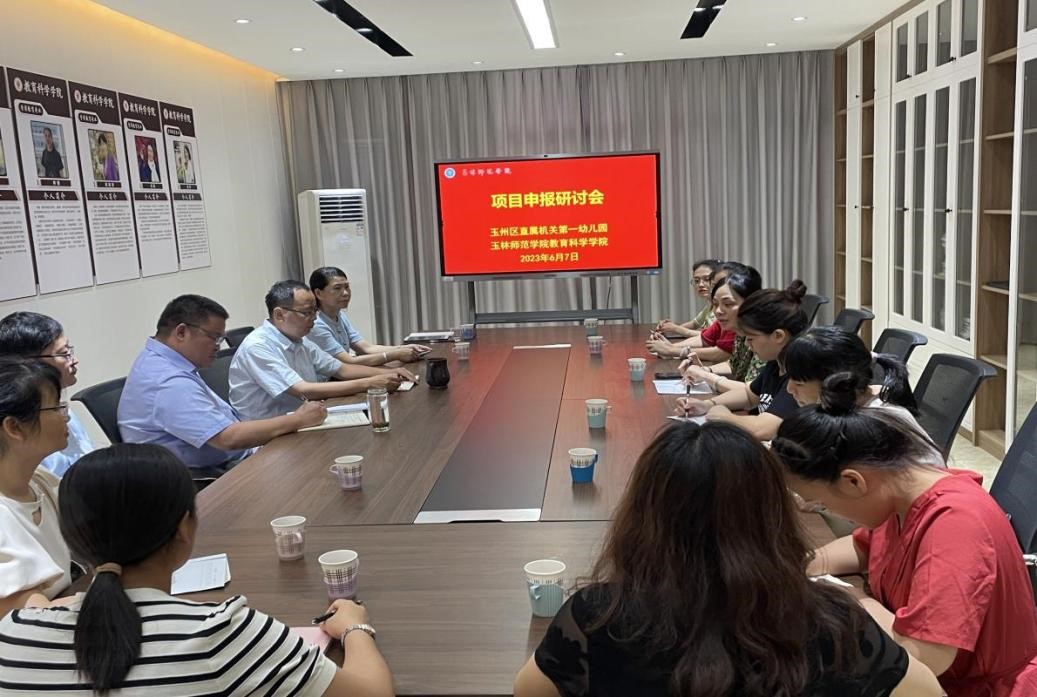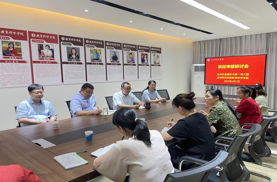 6月7日下午,我院与玉州区直属机关第一幼儿园于我校东校区明德楼408会议室召开项目申报研讨会,玉州区直属机关第一幼儿园园长卢剑萍、课题组成员,我院院长陈庆文、副院长谢清理、金康彪以及学前教育专业教师代表参加此次研讨会。