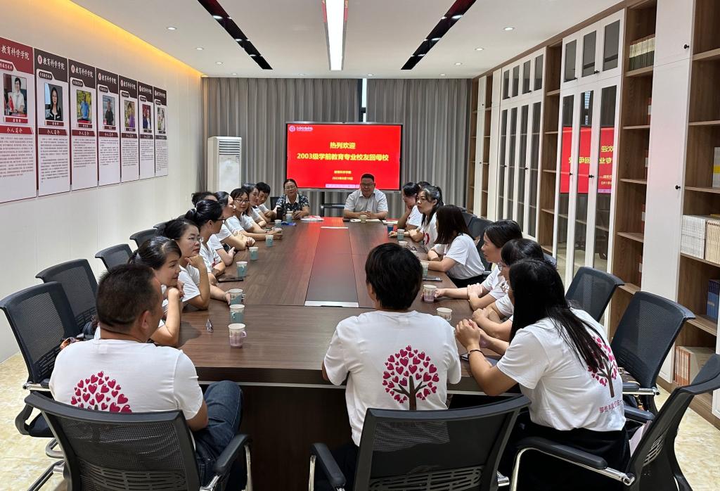8月19日,我院学前教育专业2003级校友回到母校在明德楼会议室召开毕业二十周年校友座谈会,我院院长陈庆文、副院长谢清理,教师教育学院院长梁钊华,2023级学前教育专业班主任杨文静以及回校校友参加此次座谈会。