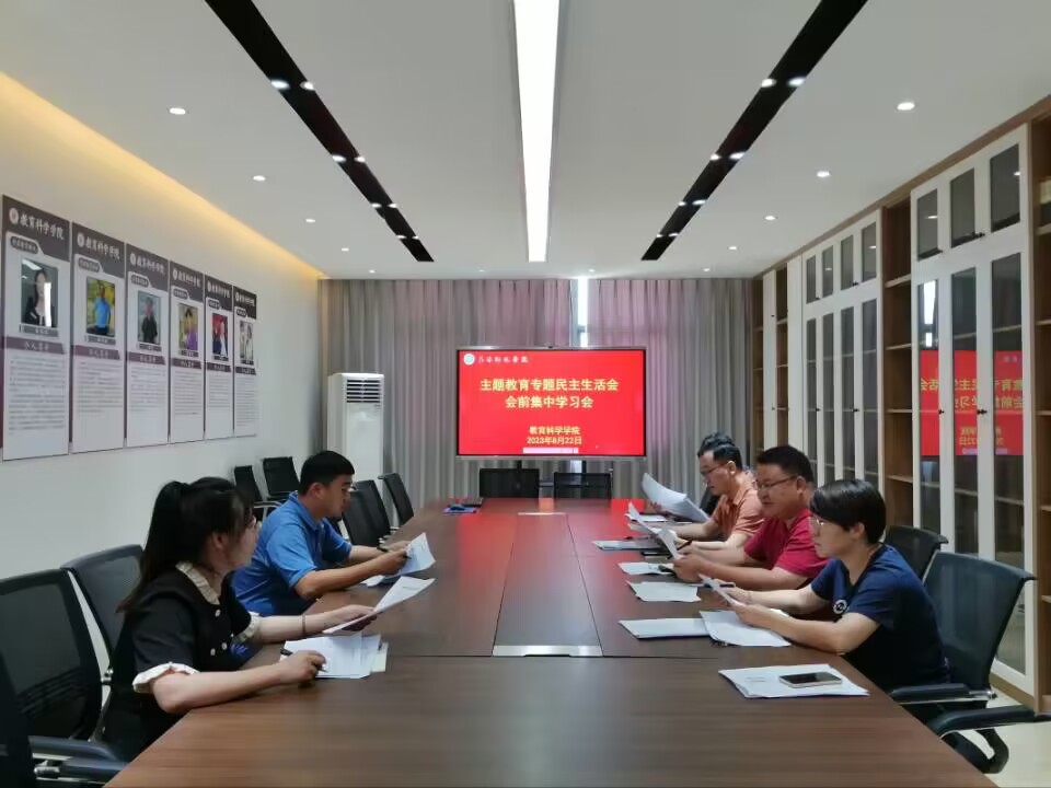 8月22日下午,我院党委在明德楼408会议室开展学习贯彻习近平新时代中国特色社会主义思想主题教育专题民主生活会会前集中学习会,我院领导班子成员参加会议,会议由我院党委书记崔海波主持。
