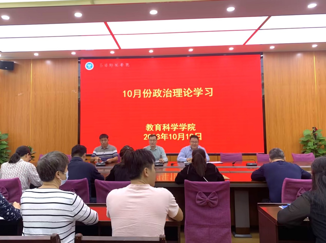 10月19日,我院于我校东校区明德楼学院会议室召开十月份政治理论学习会,我院领导班子成员,辅导员,行政人员以及教师代表参加此次学习会。