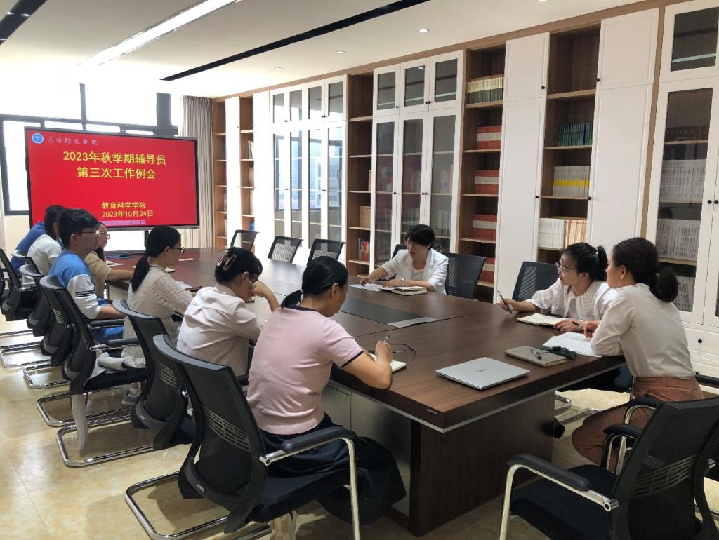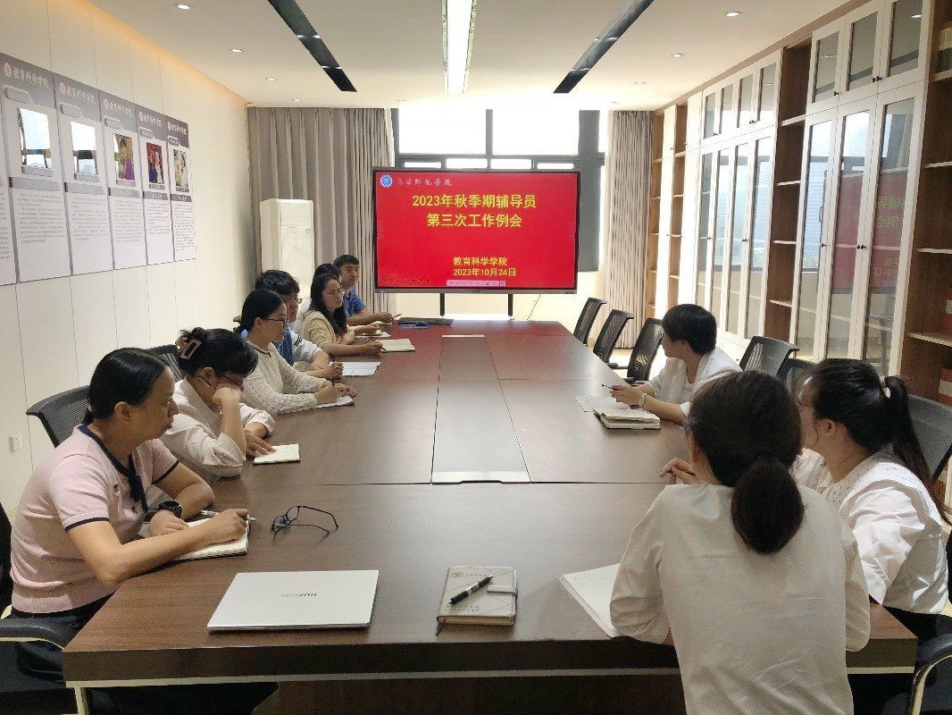 10月24日,我院在明德楼408会议室召开2023年秋季期辅导员第三次工作例会,该院党委副书记李尚芳以及全体专、兼职辅导员参加此次会议。