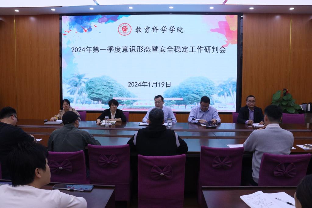 1月19日,我院在明德楼310会议室召开2024年第一季度意识形态暨安全稳定工作研判会,学院领导班子成员,全体教师参加此次会议。