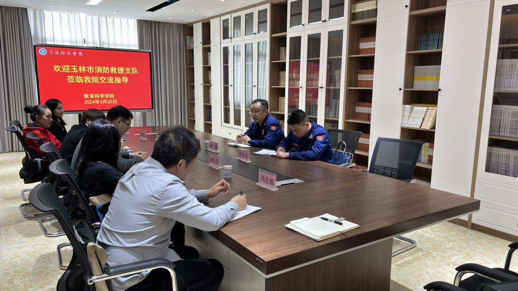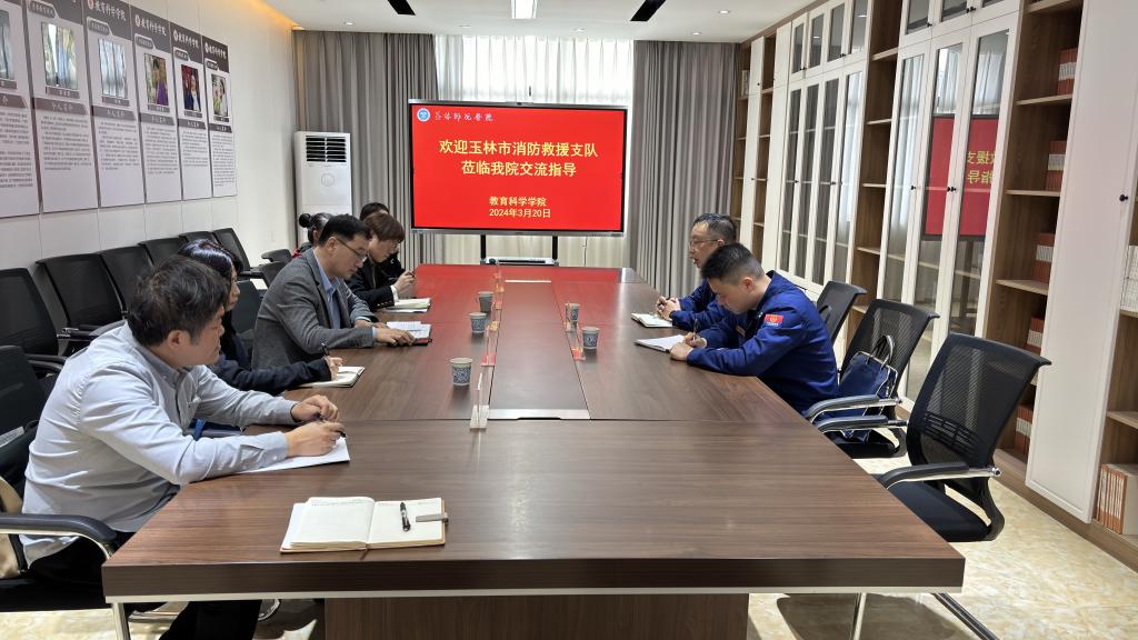 3月20日,玉林市消防救援支队副政委潘攀、指导员陈浩天一行到我院开展交流座谈,我院党委书记崔海波、副书记李尚芳、应用心理学专业教师参加会议。