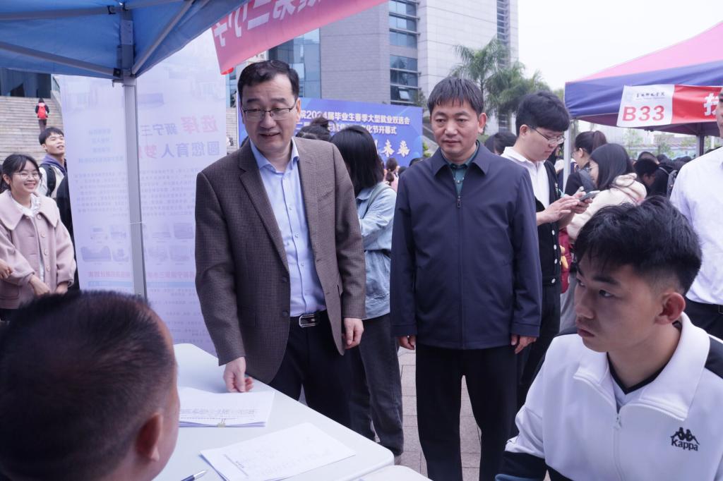 3月22日上午,玉林市人力资源和社会保障局于我校东校区读书广场、新民楼景观大道举办2024届毕业生春季大型就业双选会,我院领导班子成员及毕业班班主任深入招聘会现场指导毕业生就业工作。