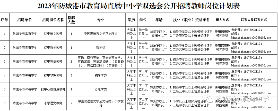 南宁专场 || 防城港市滨海中学2023年双选会公开招聘教师公告