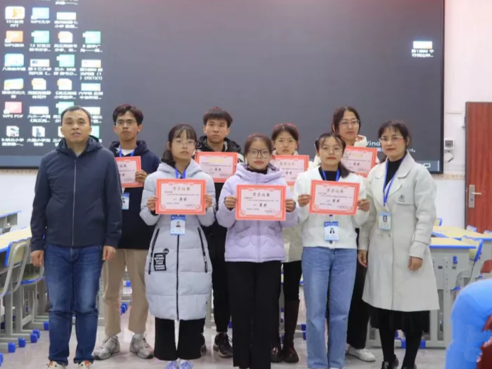 欢送会上,潘副主任充分肯定了实习学生在实习期间的表现。他表示,在校期间,实习学生一直待人有礼、勤奋好学,虚心求教,工作积极肯干,不怕吃苦,与同伴之间相处友好、互帮互助、互相关心,对学生有爱心,敢于抓住一切机会锻炼自己。期间,潘副主任积极为实习学生解决实习期间所遇问题,为其未来实习工作提出有效建议,提高实习学生组织课堂教学的能力,促进实习学生专业成长,耐心与实习学生分享自身教育心得体会,与学生相处之道等有效方法。随后,潘副主任希望实习学生今后不管身处何方,都需秉承立德树人的教师基本观念,时刻牢记学校教诲与育人初心,在未来的岗位上为国家育人做出贡献。最后,该校领导为优秀实习学生颁发荣誉证书,并合影留念。