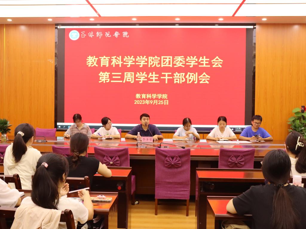 为了解我院学生干部近期工作与招新情况,9月25日中午,我院于东校区明德楼学院会议室召开团委学生会第三周学生干部例会。本次例会由我院辅导员李泽荣主持,我院团委学生会主席团成员,全体学生干部参加。