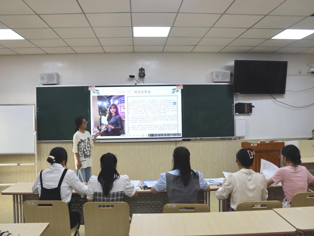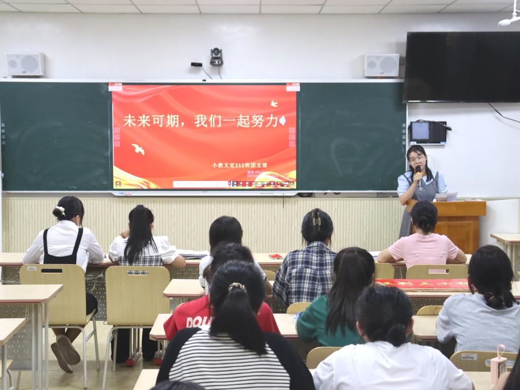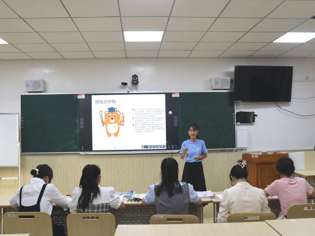 本次比赛共有19个团支部参加评选,按照抽签顺序依次上台讲解。比赛上,各团支部讲解员饱含热情,声情并茂,以ppt形式向在场评委与观众解说本团支部简介、旗帜、口号、logo、吉祥物和未来规划图等基本情况,展示团支部成立以来班级生活、学习及团日活动等特色内容。随后,讲解员根据团支部发展,结合专业特征与社会需求,讲述所在团支部愿景设计及未来实施计划。其中,教师技能协会团支部围绕“以身作则树师风,团结互助铸师魂”协会名言,积极展现该协会团支部特色。最后,李欣怡对19个团支部的ppt讲解情况进行点评。她强调,各班团支部应抓住创新这一要点,推出更多令人耳目一新的班级特色活动;未来发展规划需结合实际情况,脚踏实地;讲解需自信大方,声音洪亮。