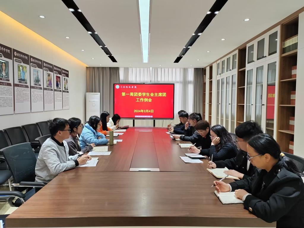 新学期、新起点、新目标、新开始。3月4日下午,我院于我校明德楼408会议室召开新学期团委学生会主席团第一次工作例会。党委副书记李尚芳、团委书记、全体辅导员及团委学生会主席团成员参加会议。