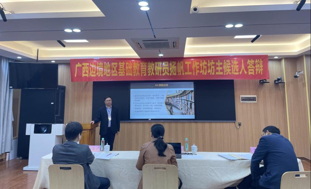 为加强广西边境八县教研员队伍建设,构建教师骨干体系,整体促进教研员教育教研水平提升,根据《教育部关于加强和改进新时代基础教育教研工作的意见》(教基〔2019〕14号)《广西壮族自治区人民政府办公厅关于印发广西边境地区教育提升工程实施方案的通知》(桂政办发〔2022〕22号)文件要求,2月23日,由广西教育研究院主办,我校我院承办的广西边境地区基础教育教研员扬帆工作坊坊主候选人答辩遴选会在玉林师院东校区明德楼顺利开展。